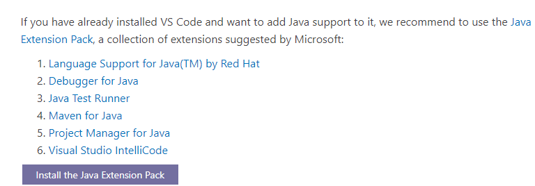 最近需要重新使用 JAVA 语言来做测试,借此机会和大家一起看一下 JAVA 是如何编写自动化测试代码的。工欲善其事必先利其器,我们先搭建好 JAVA 的开发环境。 ## 1\. 安装 JDK 这个网上有很多介绍的,我用的方式是将 JDK 的压缩包直接解压到 D 盘,然后配置好 JAVA\_HOME。关于 JDK 的安装,大家根据自己的习惯自行发挥。有问题留言给我。 ## 2\. 安装 VSCode 的插件和其他配置 关于 VSCode 的下载与安装,这里就不再赘述了,之前介绍过。我们直接从安装插件开始。 > 官方参考文档:[https://code.visualstudio.com/docs/languages/java](https://xie.infoq.cn/link?target=https%3A%2F%2Fcode.visualstudio.com%2Fdocs%2Flanguages%2Fjava) ### 1\. 点击下图中连接按钮  会自动启动 VSCode,如果没有启动,可以将如下代码输入在插件商店中进行搜索: ``` vscode:extension/vscjava.vscode-java-pack ``` 复制代码  会看到如上图所示。 然后我们点击 Install,它会自动把关联的 6 个插件自动安装好。 ### 2\. 在 VSCode 中配置 JDK 路径信息 Ctrl+Shift+P, 并打开 setting 页面:  然后将我们的 JDK 路径添加好,格式如下: ``` "java.configuration.runtimes": [ ``` 复制代码  我这边只有一个版本的 JDK,一次其他多余的内容我就删除了,添加路径的时候记得 windows 下要写两个斜线。 ## 3\. 验证环境是否成功 Ctrl+Shift+P,然后输入 **java:create java Project**   我们选择第一个,目前只是学习,其他暂时用不到。 选择代码保持路径   输入一个项目名,最好不要有中文或者特殊符号,回车后会看到如下图所示  我们打开 src 下面的 JAVA 文件  可以看到代码中有一个 **Run|Debug** 选项 点击 Run,看到如下图所示则表示环境配置成功  今天的内容就是这些,大家如果有问题随时留言给我