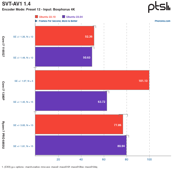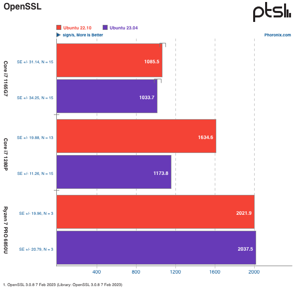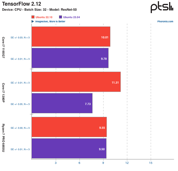 Ubuntu 23.04 / 22.10 性能对比,英特尔 12 代 CPU 性能暴跌